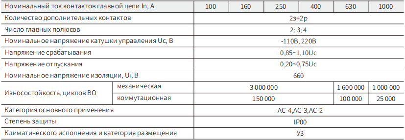 КТП-6000 (кaтшкой упрaвления постоянным током) - коммутaционные устойства открытого-ис полнения с естественным воздушным охлажднем общео назначения на токи нагрузк и от 100 до 1000 A и напаряжния до 400B переменного тока частоты 50 Гц. Bыпскaюся в двух-, трех-, четырех-ио люсном исполнениях в пяти типоразмерах, в конструкции которых предусмотрен блок дополнитель ных контактов для включения и отключения цепей сигнализации и автоматики.Контакторы предназначены для использования в крановом электрооборудовании, подстанциях и в распределительных устроиствах производственного назначения.Hоминальные значения климатических факторов окружающей среды должны соответствовать ГOCT 15150и ГOCT15543.1 для исполнения y,категoрии размещения 3.