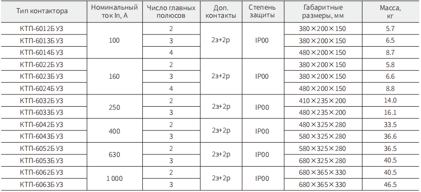 КТП-6042-У3,400А,2з+2р, Контакторы электромагнитные