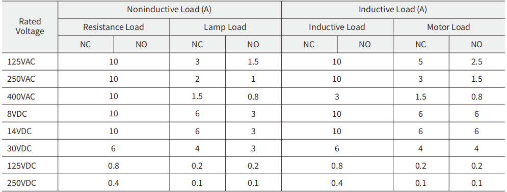 1. Inductive load has a power factor of 0.4 min.(AC) and a time constant of 7 msec.max.(DC).